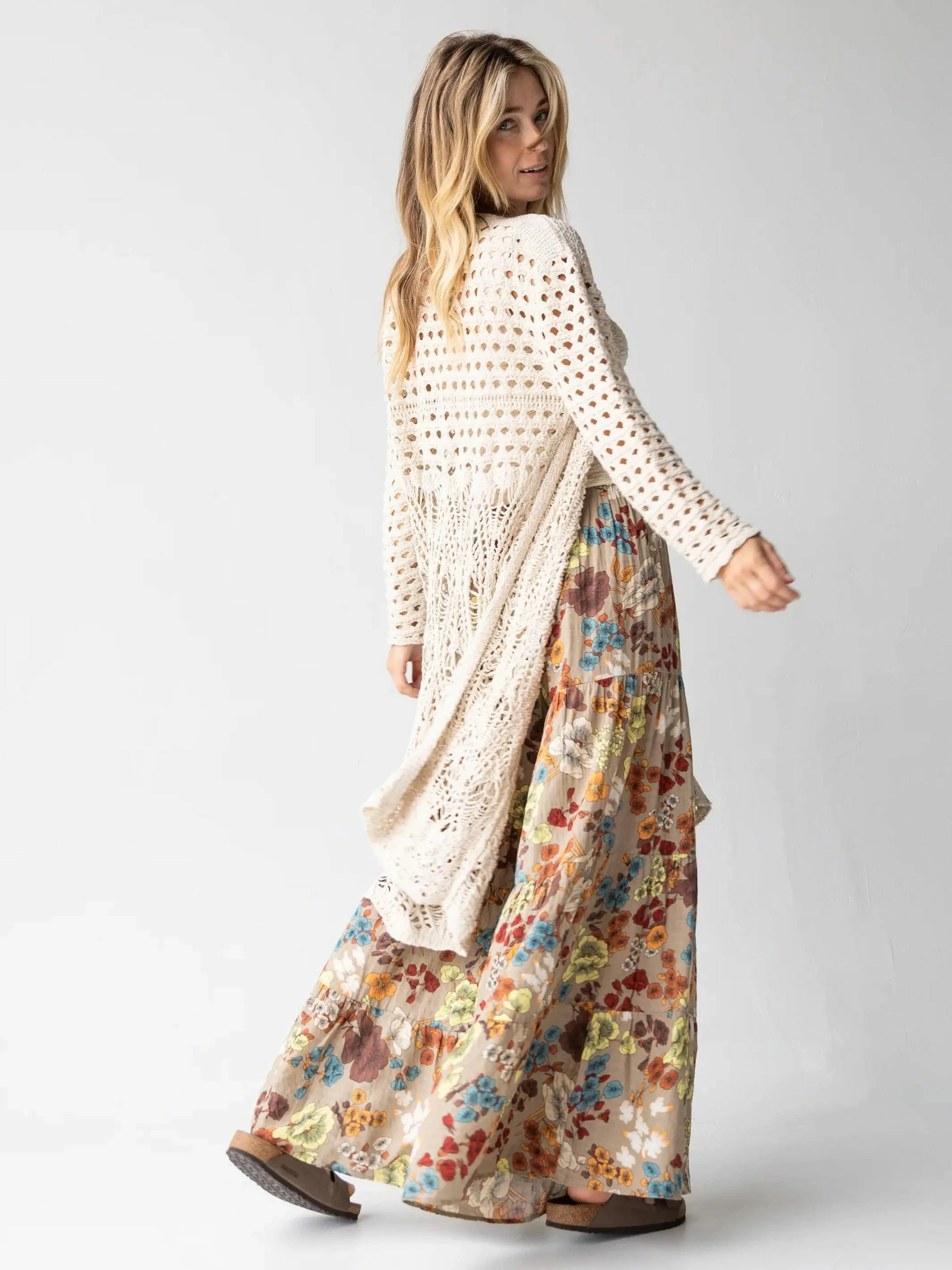 You know that cozy long duster you’ve been looking for? Look no more! The Abigail Duster is that fundamental long sweater that looks phenomenal over your strappy sundresses or so stylish with a t-shirt and jeans! This snug-fitting sweater is a classic layering piece that you’ll reach for all year! Be careful while wearing this crochet cardigan – any open weave sweater can snag!