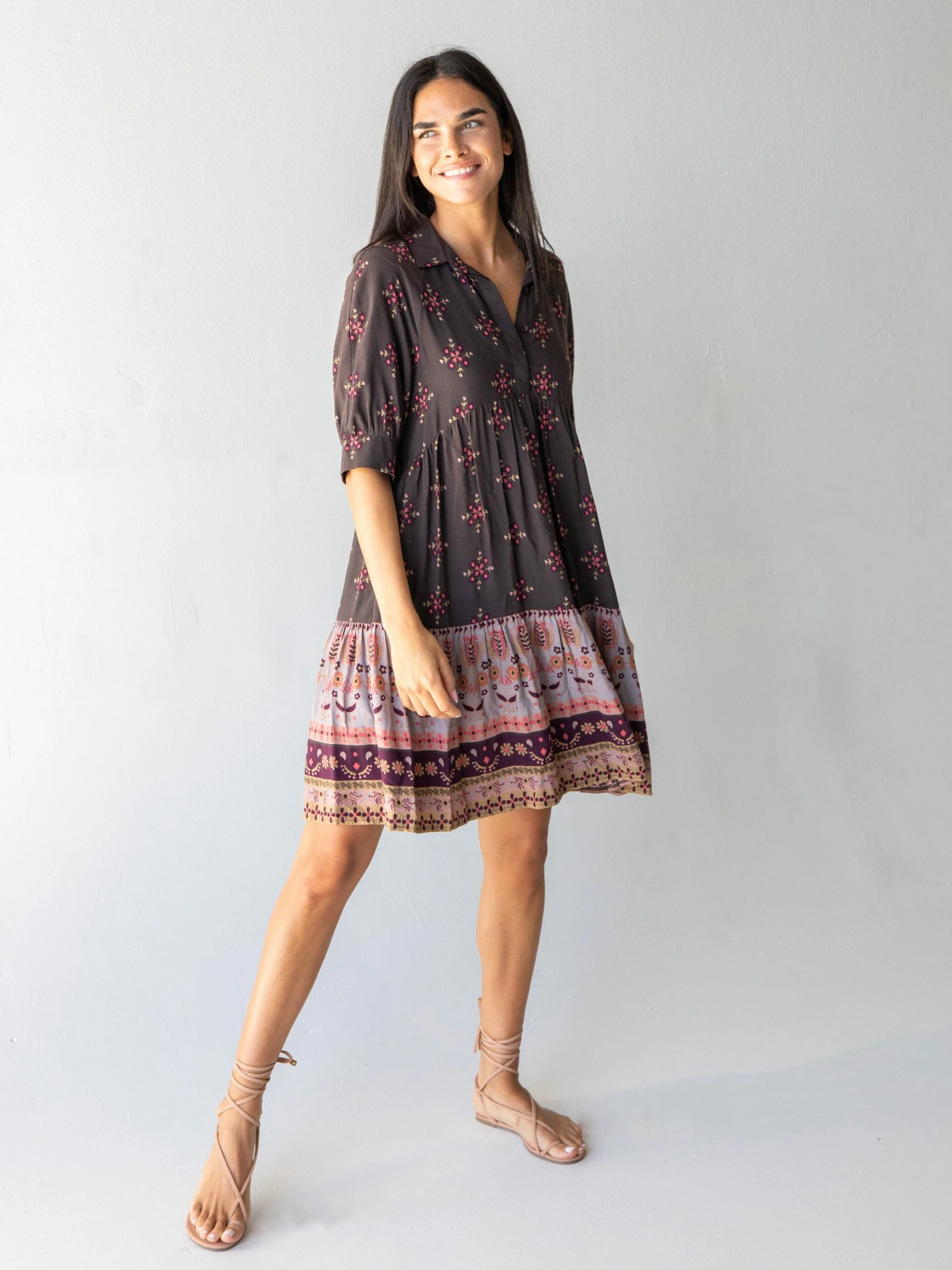 If you love the Rebecca Maxi Dress (one of our all-time, best-selling dresses), you will adore her short sister Becca! She has a similar personality as her big sister, but with a short skirt! Becca is flattering for any age, shape, or size and is so easy to wear! It’s fitted up top with a buttoned bodice and a winsome empire waist. The rest of this tiered dress flows in a relaxed fit that keeps you comfortable in a fabulous floral print. It has a way that makes you feel feminine, even when you’re running errands. Of course, we kept the pockets in this short style! Wear it with Birks or sandals or you can even wear it year-round with leggings and boots! Either way you wear it, you’ll be a super fan of the mini version of Rebecca!