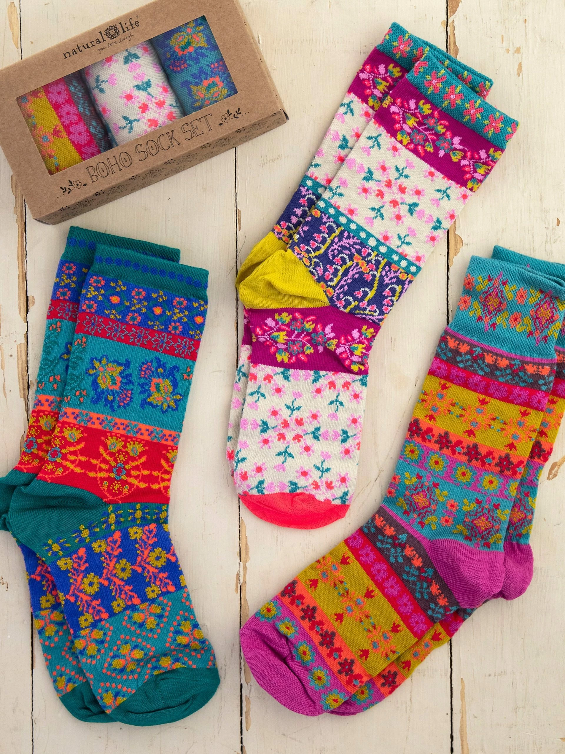 You can never have too many pairs of our Boho Socks! They add so much colorful fun detail to any outfit whether you’re wearing Birks, sneakers, or just lounging on the couch. We’ve created this adorable set of three in a convenient and cute gift box so it’s ready to make your gift-giving EASY! Anyone would love them! Since they’re super comfy, you might need a couple sets for yourself so you can wear a pair every day!