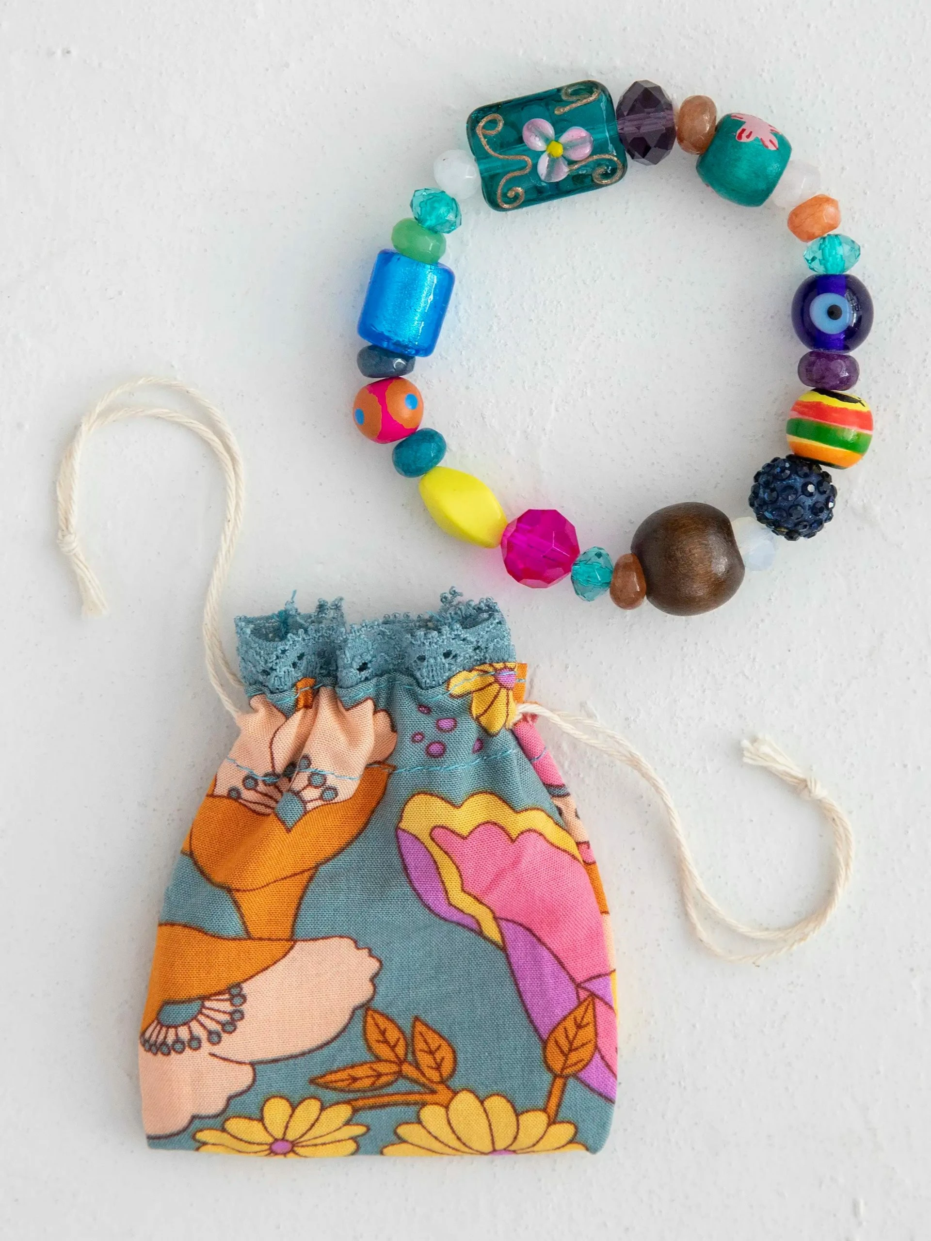 We love layering on some fun beaded jewelry! The Calypso Bracelet is made of wood and glass beads and SO unique! The elastic band makes it super easy to slide on and off and fits everyone! It also comes in a little drawstring bag, upcycled from fabric remnants. It’s the perfect gift!