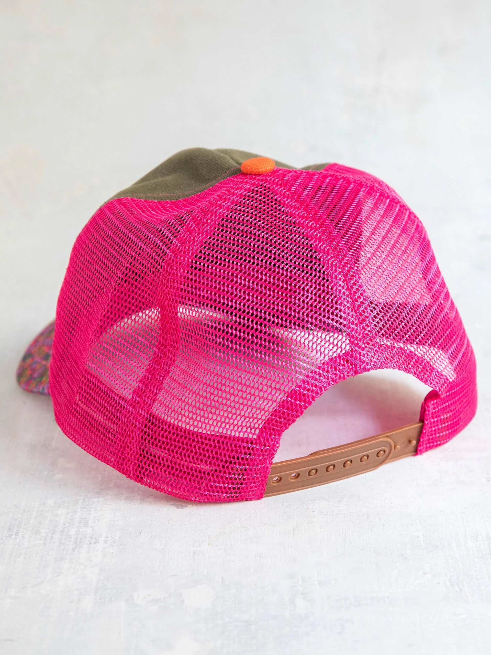 The perfect hat for the on-the-go girl! It’s so pretty and colorful & is the cutest easy accessory for any outfit! It features a canvas front with sewn-on patch, breathable mesh and a snapback closure… so one size fits most! Pop this hat into a medium Happy Bag and you’ll have a happy friend!