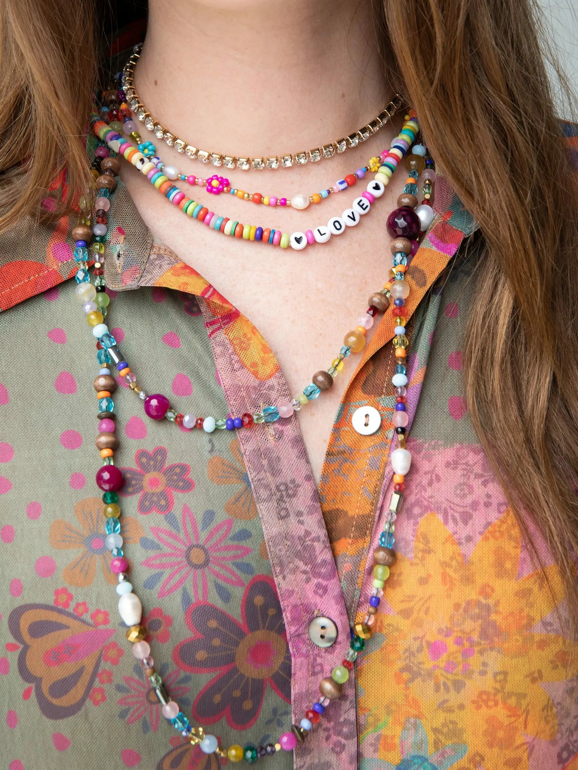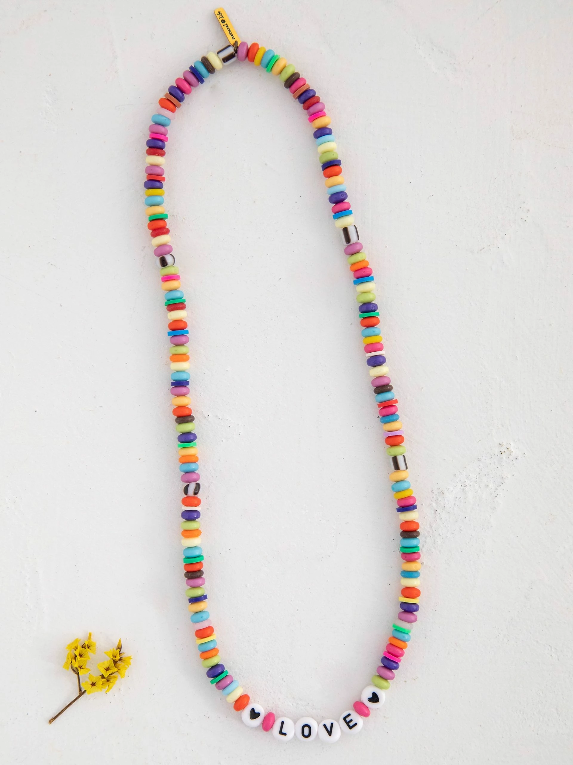 Is it a choker or a bracelet? You decide! This colorful beaded choker (or bracelet) will adorn your neck (or your wrist) with beautiful bohemian beads and LOVEly letters! Don’t you just LOVE it?! If you’re wearing a crewneck dress or shirt, you might decide to wrap it around your wrist. If your outfit has a v-neck, wear it as a choker or layer it with other necklaces. Buy two so you can have a matching choker AND bracelet! Options make life easier – especially when they’re jewelry!