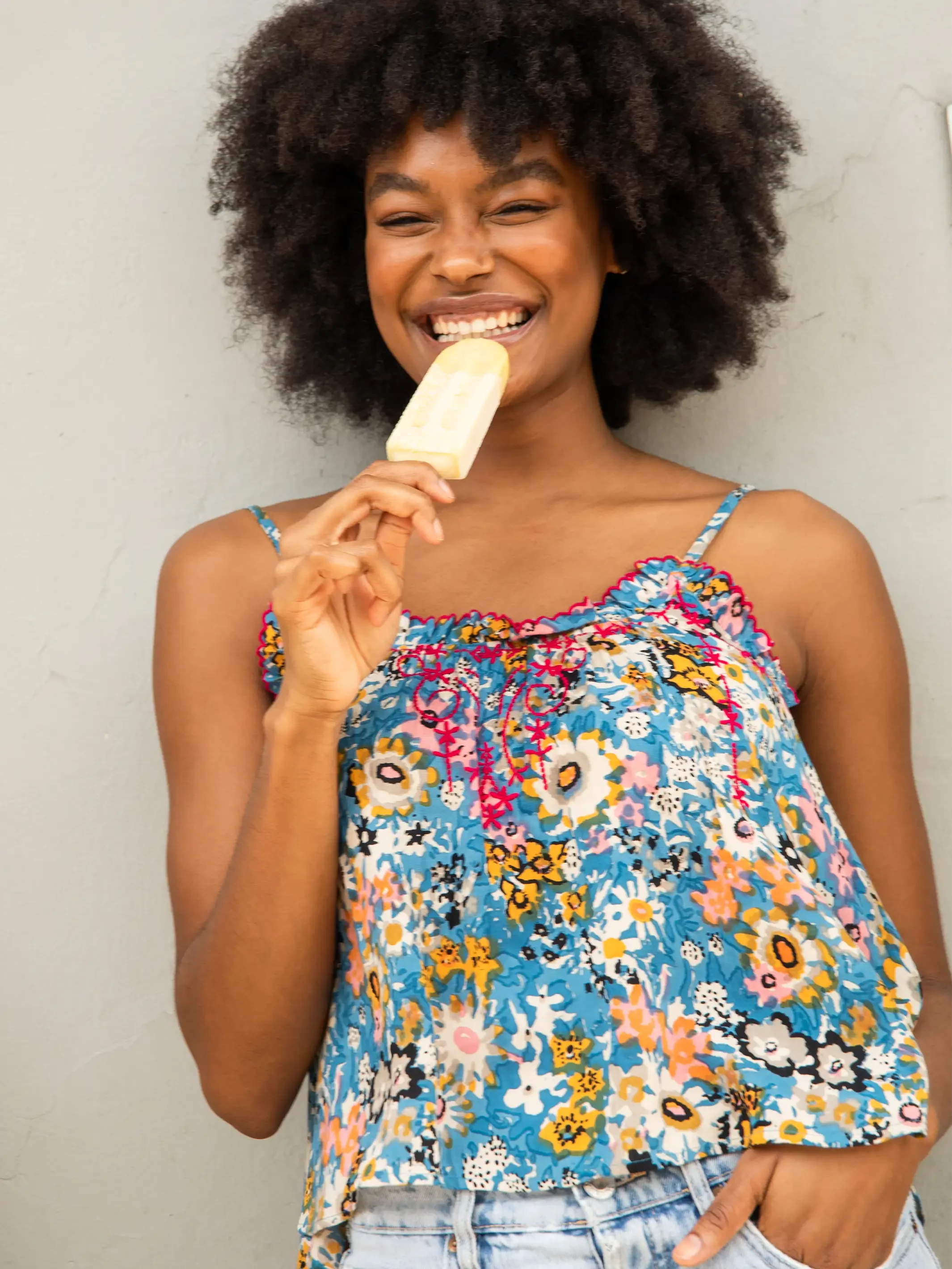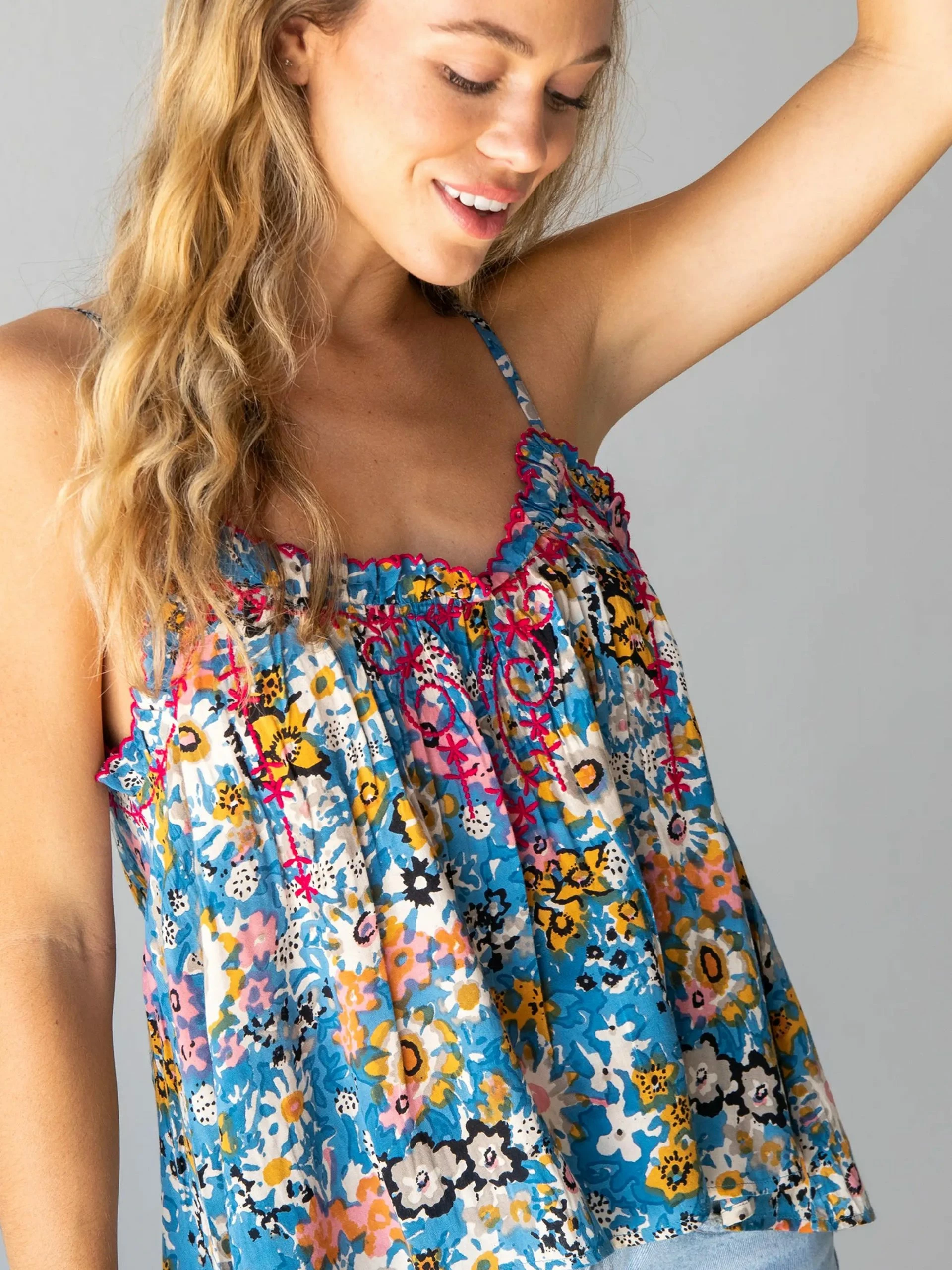 Our darling Harley Dress is so cute and well-loved that we needed a top just like it. Just like the bodice of the midi dress, it has adjustable straps, embroidery, and such a cute, ruffled neckline. It’ll be the perfect summer shirt to throw on with shorts, jeans, or any skirt. This full sleeveless top has a flouncy feel that will keep you cool and looking super cute!