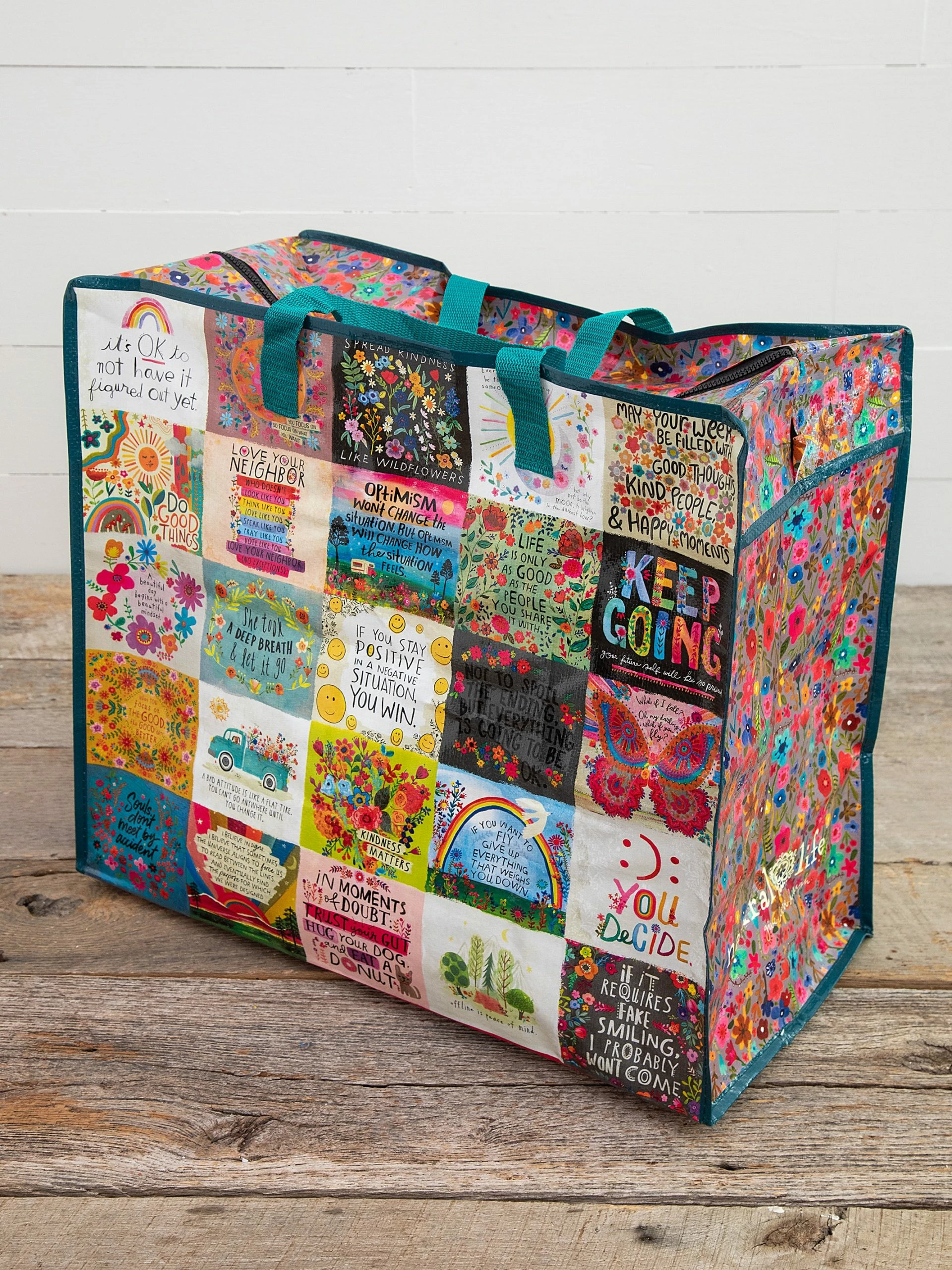 If you haven’t used our Jumbo Zip Tote yet, you’re in for a treat! Our Jumbo Zip Tote is perfect for road trips, dorm moves, shopping sprees, park days, beach excursions, gift wrapping, book toting, and more! Use them in a kid’s room as a home for stuffed animals. Give your linen closet a long overdue makeover by stashing extra bedding in our Jumbo Zip Tote—adorable and organized! We like using them for off-season clothing storage too! Our totes are sure to bring cheer wherever they’re used. Since they easily wipe clean and fold flat for storage, keep a supply for any need that might arise.