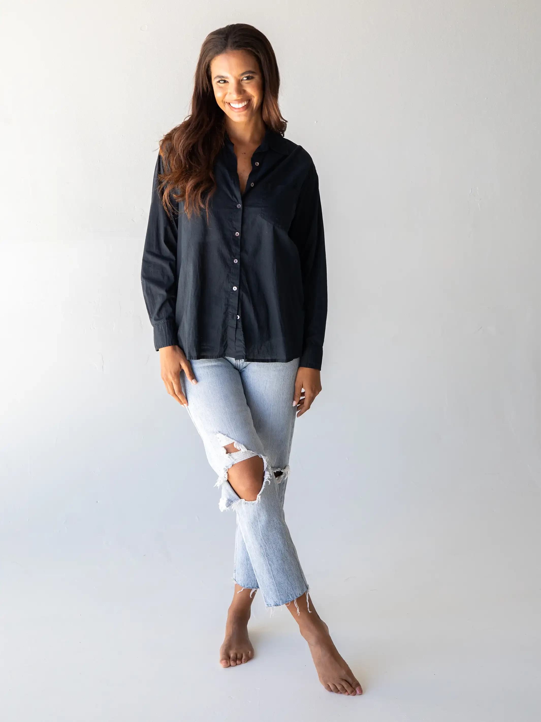 We love to create versatile clothing – and the Lived-in Button Down is no exception. Wear it as a shirt-jacket over ANYTHING; wear it alone with jeans, shorts, skirts, etc. – so many options! You can even throw this on over your bathing suit and keep it into your beach bag. Layer this shirt with a tank or tee for any occasion. Change the look entirely by wearing it over one of our jumpsuits or dresses – you’ll love the way it’s so easy to style. The lived-in look and softness only get better with age! This 100% cotton shirt has a casual, wrinkled look and is meant to be oversized for comfort!