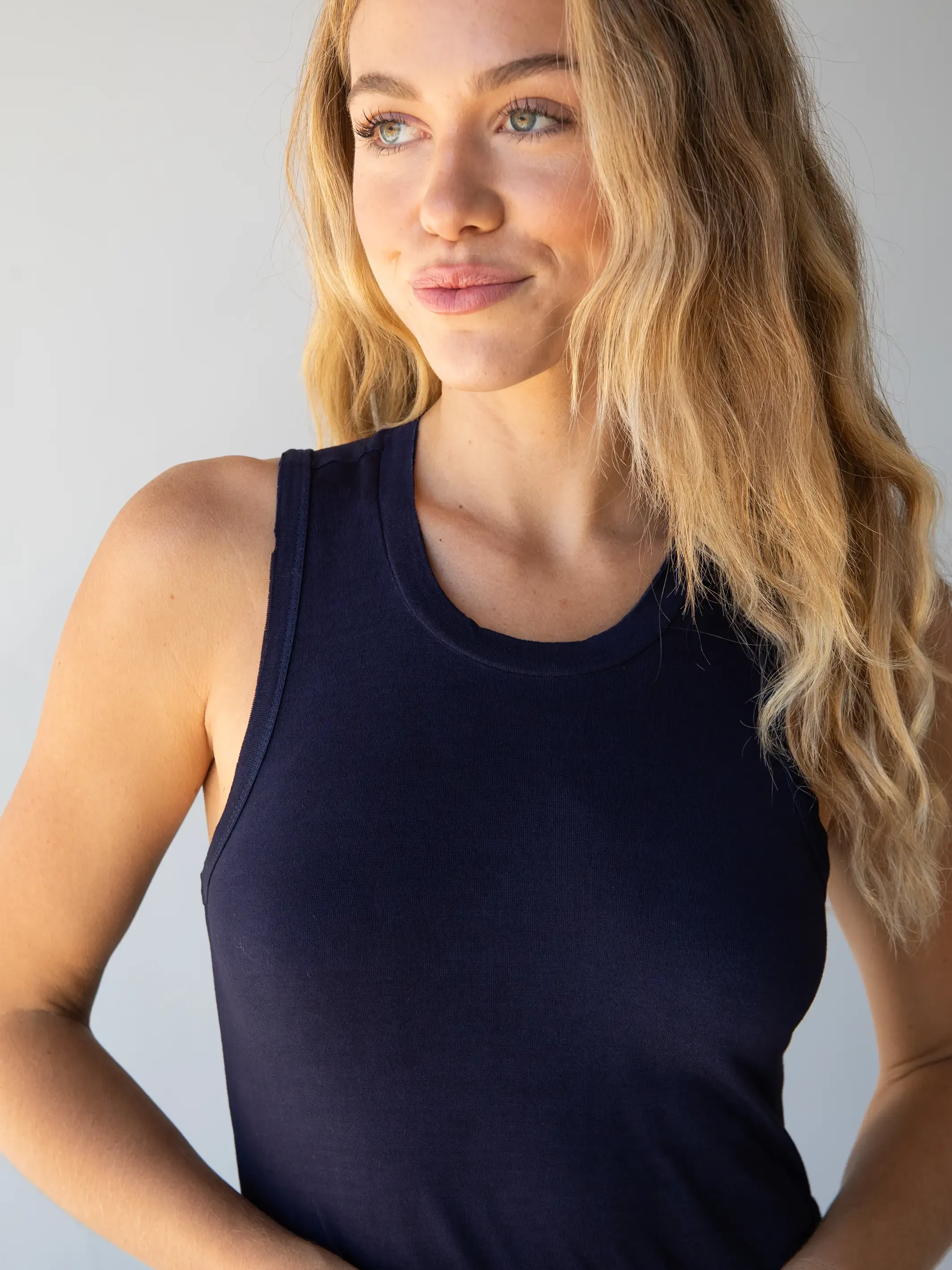 A timeless maxi silhouette with so many bohemian details! This sleeveless dress is crafted from ultra-soft jersey knit – as soft and comfy as that t-shirt you’ve owned for years… Livie flatters with a fitted bodice and raw edge seams, then flares to a full scalloped hem skirt! Seam detailing abounds as if it’s sewn together like patchwork and tie-dyed stripes are always FUN! You won’t be able to resist taking a twirl in this dress!