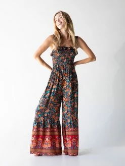 Be the first to review “Natural Life Megan Smocked Jumpsuit – Navy Red Floral Border” Cancel reply