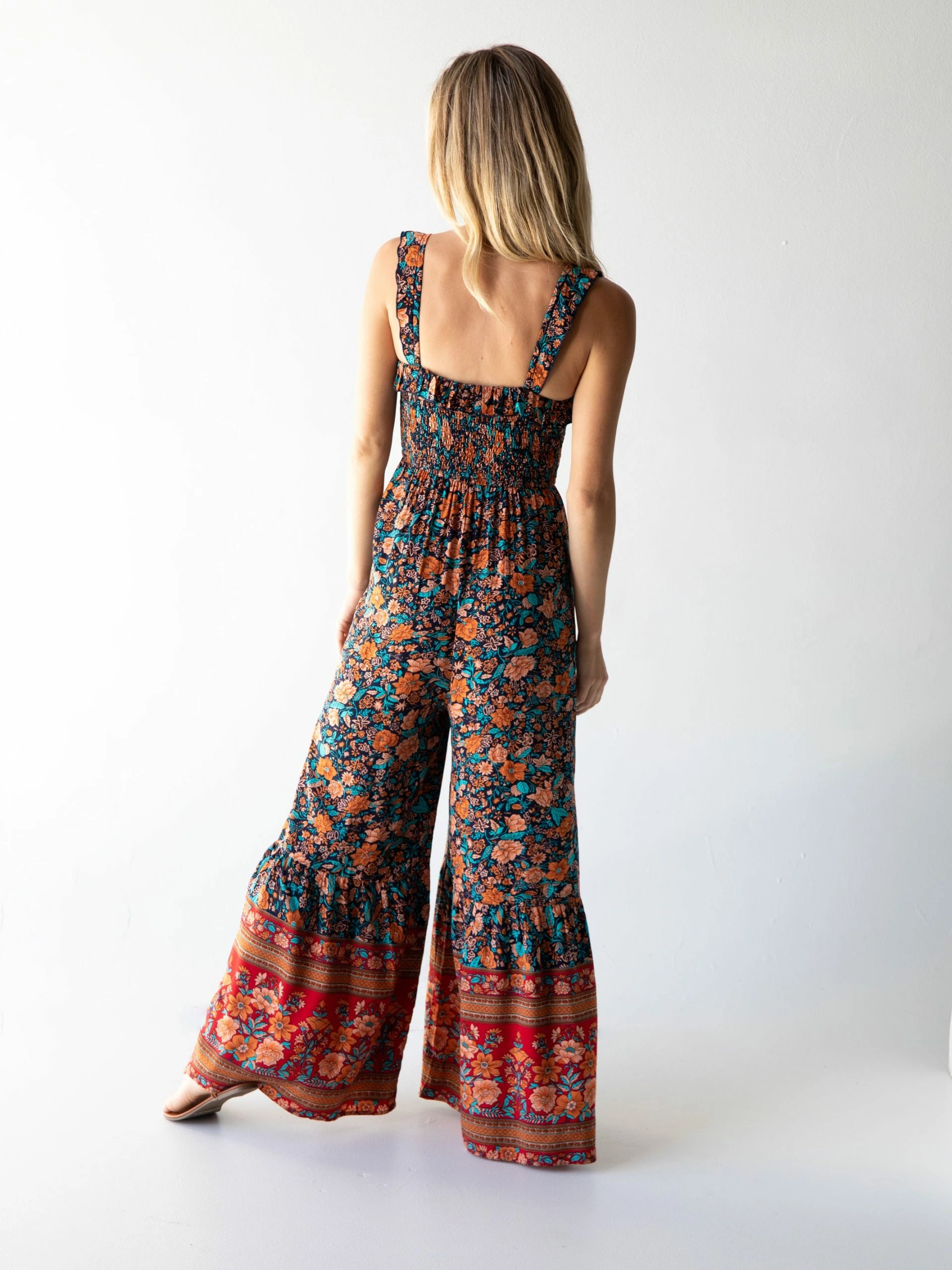 This darling of a jumpsuit will have you smiling every time you throw it on! We’re sure you’ll keep reaching for it because it’s an EASY and perfect choice for any occasion! The smocked flattering bodice has an adorable, ruffled edge all along the neckline with super cute ruffled elastic straps. Not only does the Megan have full and flowy wide legs but it also has tiers of buttery soft material! The fun floral print even has a contrasting border at the ankles! We just love that! The details abound on this new wardrobe staple! It will even carry you into crisp fall days with a simple outer layer – it all looks so cute with this jumpsuit! Head out the door in no time because the Megan Jumpsuit will keep you looking perfectly put together wherever you’ve planned to spend the day.