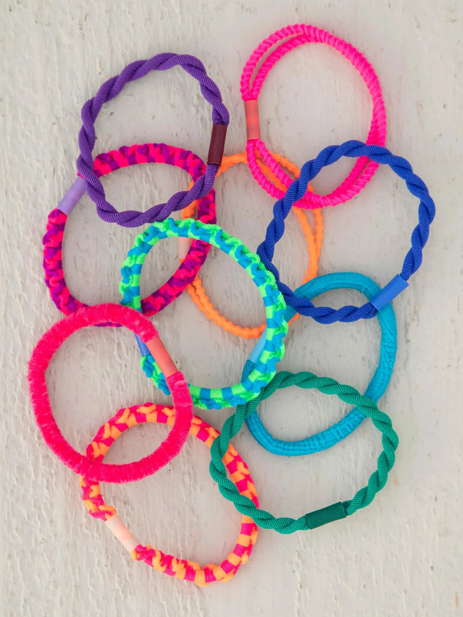 Colorful texture for your hair with so many ways to wear! You’ll LOVE how the Textured Hair Ties look and feel! Wear them like a regular hair band, but don’t worry — they won’t break or pull your hair! These cute hair accessories are gentle on your hair and super cute with any outfit! This set of TEN make a fabulous gift alone or paired with any of our other fun hair accessories!